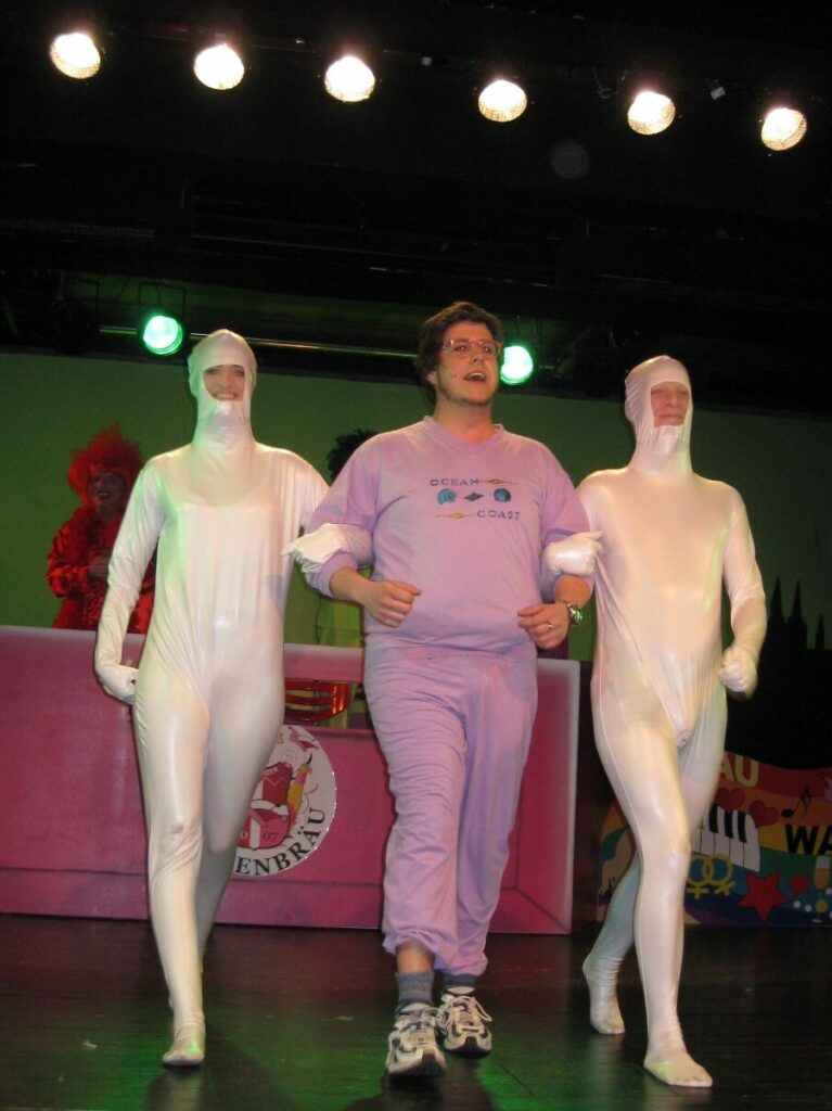Gude, bin der Stefan aus Kowelenz Meddernisch, BJ 78 uncut. Zum NarrenbunT kam ich 2009 als ich aufm Koblenzer CSD am NarrenbunT-Stand meinen Mitgliedsantrag unterschrieben hab. Von da an war ich als Sänger für Texte zuständig, die keiner singen wollte – angefangen mit „Es war anal“ als Peter Maffay mit einer Rosine im Gesicht. Dann gab es Texte über allerlei Themen, wie „1000x onaniert“ oder „Er wird net steif“. Wo, außer beim NarrenbunT kann man frei über solche Dinge singen? Nirgends!